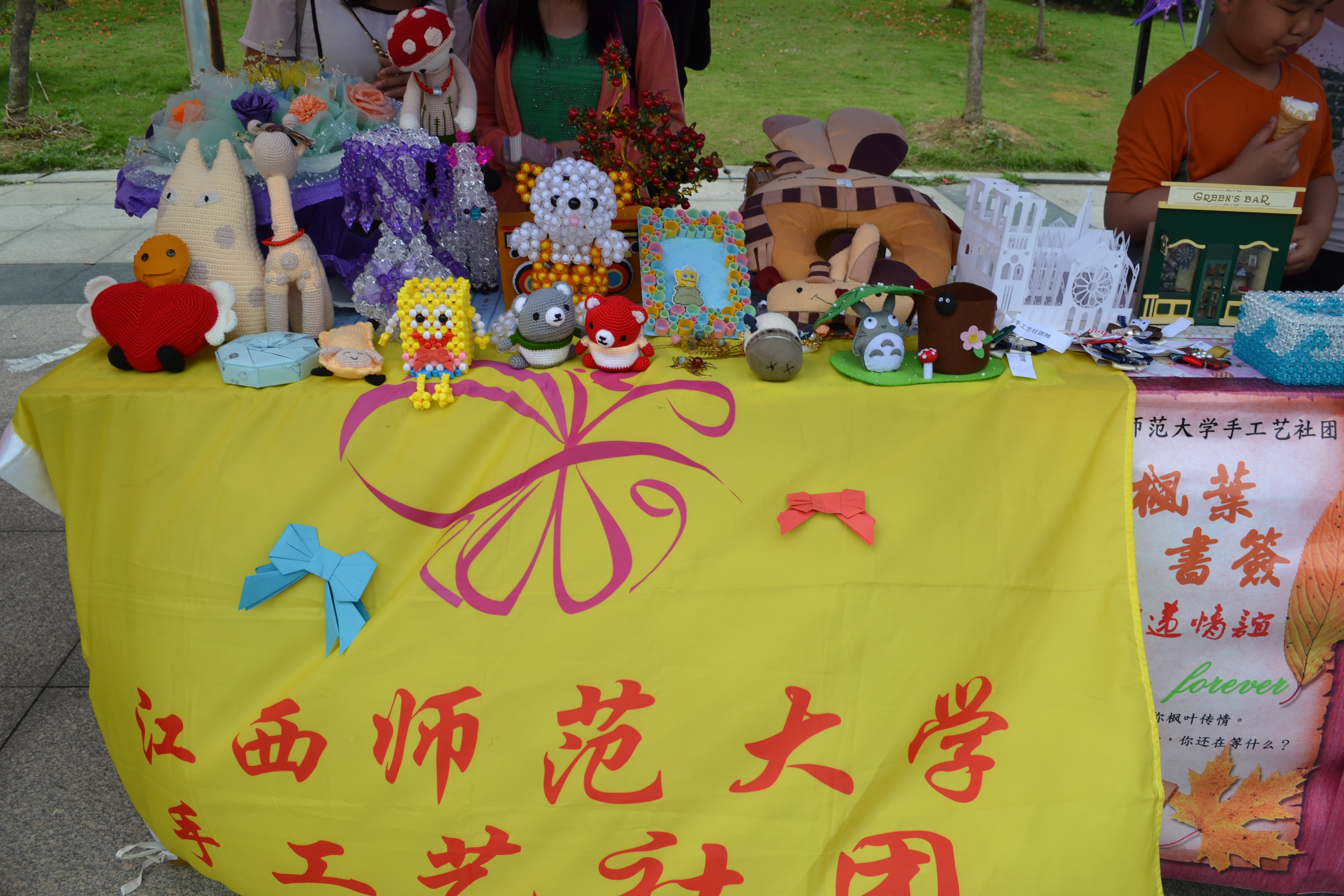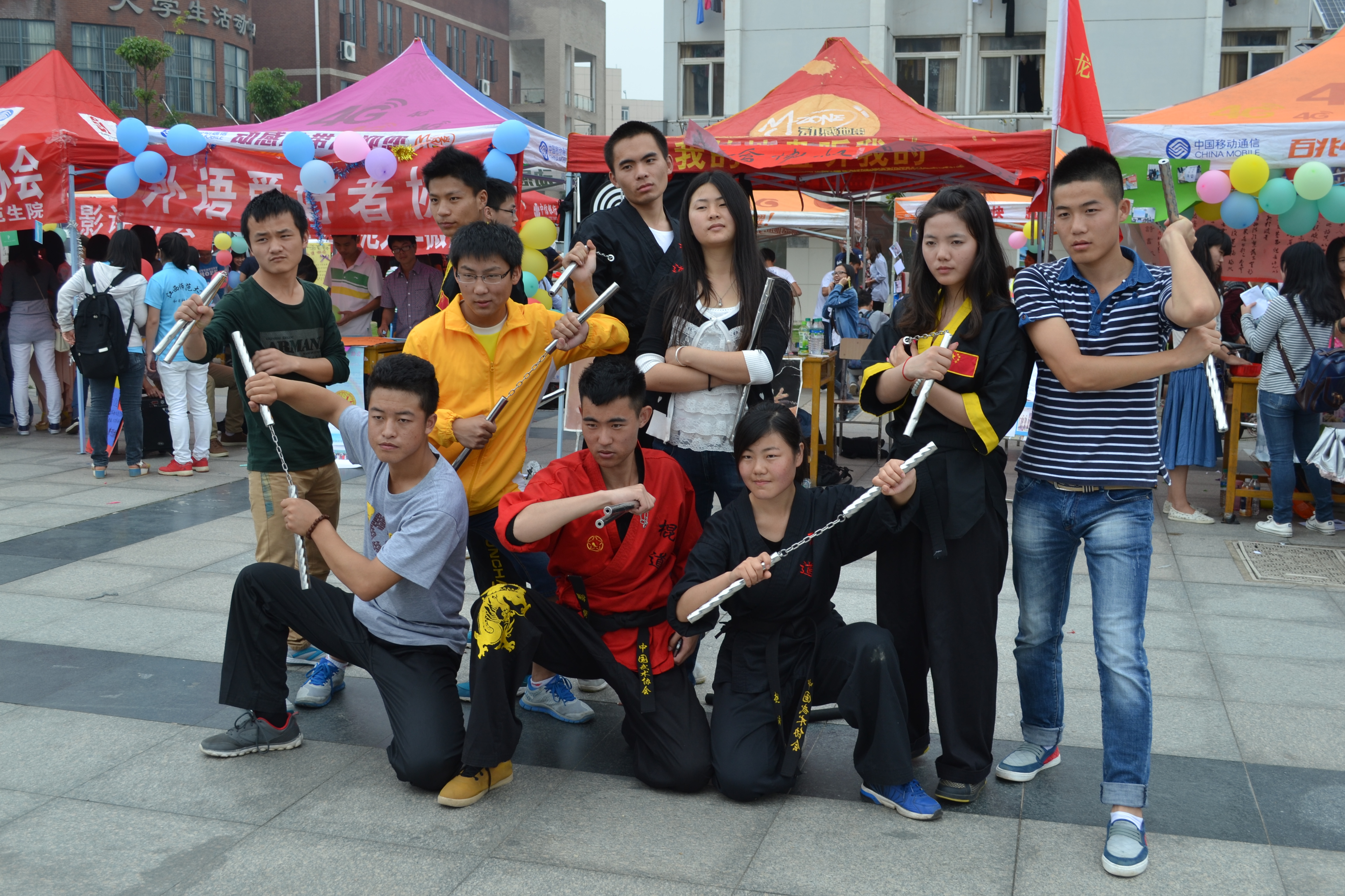 初夏刚至,美丽的师大,天朗气清,草木向荣。5月18日上午,江西师范大学第21届校园开放日暨“我的中国梦——奋斗的青春最美丽”社团文化艺术节开幕式在瑶湖校区举行。本届校园开放日暨第21届社团文化艺术节由江西师大校团委、校学生社团联合会共同主办,起到了承上启下的作用。上午9时,校园开放日暨第21届社团文化艺术节在我校青年文化广场正式拉开了帷幕。各具特色的社团洋溢着青春师大的魅力,应接不暇的活动展示着师大学子的朝气。广场中央的“社团风采秀”吸引了大量观众驻足观看。首先登场的是国联带来的踢踏舞《凯旋》,演员们欢快的节奏带动了观众的热情;随后,心语手语社表演的手语舞蹈《明天你好》感动了观众,博得了阵阵掌声;而JDC社团的动感热舞更是将现场气氛推向了一个高潮。接着动漫社团动漫形式的宅舞演出、丹青书画协会的现场书法国画创作、VDS舞团的爵士舞《blow》、龙舞双截棍社团的《棍舞飞扬》等精彩节目轮番上阵,可谓为观众奉上了一场文化的饕餮盛宴。最引人关注的是京剧社压轴上演的京剧专场演出,《红娘》《红灯记》《御碑亭》《游龙戏凤》等十几出经典京剧曲目表演,让现场观众尤其是年轻一代深深感受到了国粹的艺术魅力。社团是大学校园文化的载体,是对外精神展示的窗口,也是学生发展个人兴趣与能力的重要平台,师大社团正用自己的特色和文化积淀向人们展示一个充满活力的师大,昂扬向上的师大。各社团各显其能,活动精彩纷呈。在社团游园区,蓝天环保社活动独具匠心,通过“绿色抱抱、定向越野、绿色银行环保活动”将环保与“中国梦”相结合,呼吁人们“传播低碳理念,放飞绿色梦想”;KAB创业俱乐部的“创新、创业、公益”校园展辩会,鼓励大学生创新创业;双截棍社的花样双截棍表演令人眼花缭乱;汉服文化协会精美的传统服饰结合茶道,古色古香;幻影轮滑社的酷炫轮滑展示令人叹为观止;手工艺社团的手工艺精品展示美轮美奂。此外,青蓝文学社的文学作品展示,美术学院手绘社团的现场人物素描等也颇受来宾关注。来校参观的学生及家长在一个个社团展位间穿梭,对我校社团展示活动表现出了极大的兴趣。近50个社团的展演,让他们近距离目睹了师大学子的风采,感受了师大校园文化的魅力。“每个社团的活动都独具特色,既充满乐趣又有意义,实在是令人眼花缭乱,流连忘返”一位观展的家长兴奋地说道。
